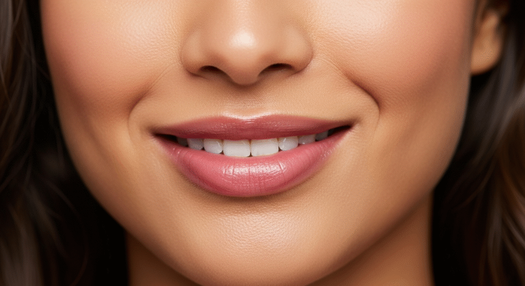 Skip bold reds; go for rose, mauve, or nude tones for soft sophistication.
