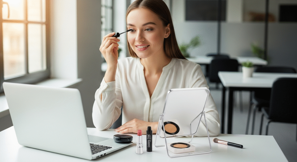 π Pro Tip: Keep a mini makeup pouch at your desk β lip balm, compact powder, and mist β for a quick 2-minute refresh before meetings π