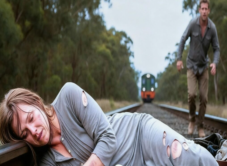 A young woman was tied to the tracks, her wrists bound with coarse rope, her ankle chained to the steel rail. Her torn dress clung to her bruised skin, her long brown hair matted with dirt and sweat. But what made Noah’s stomach twist was the tiny baby clutched to her chest, wrapped in a torn blanket, crying weakly.